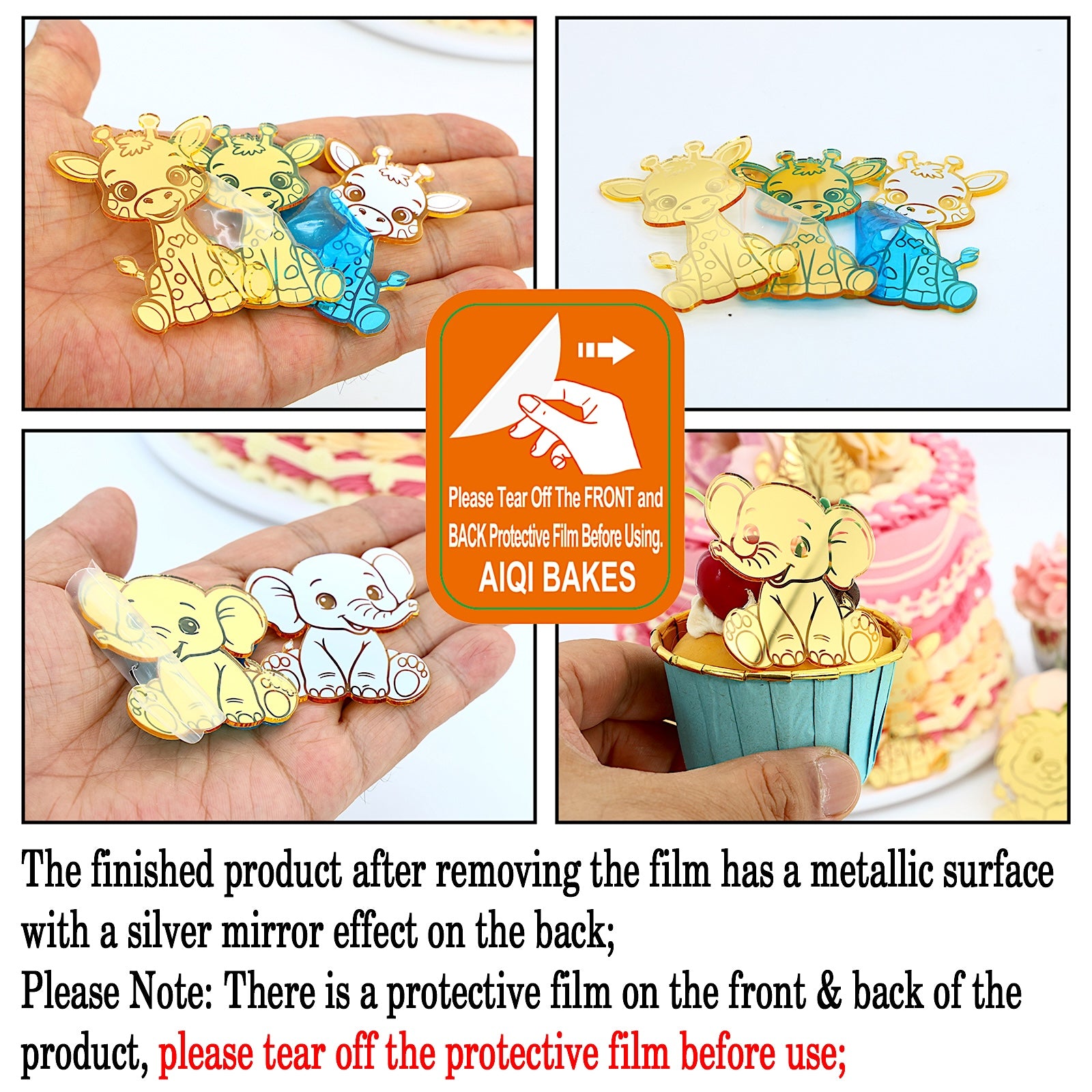 ✨ 12pcs Gold Mirror Acrylic Animal Cupcake Toppers – Bear, Lion, Giraffe, Monkey, Elephant & Cheetah ✨