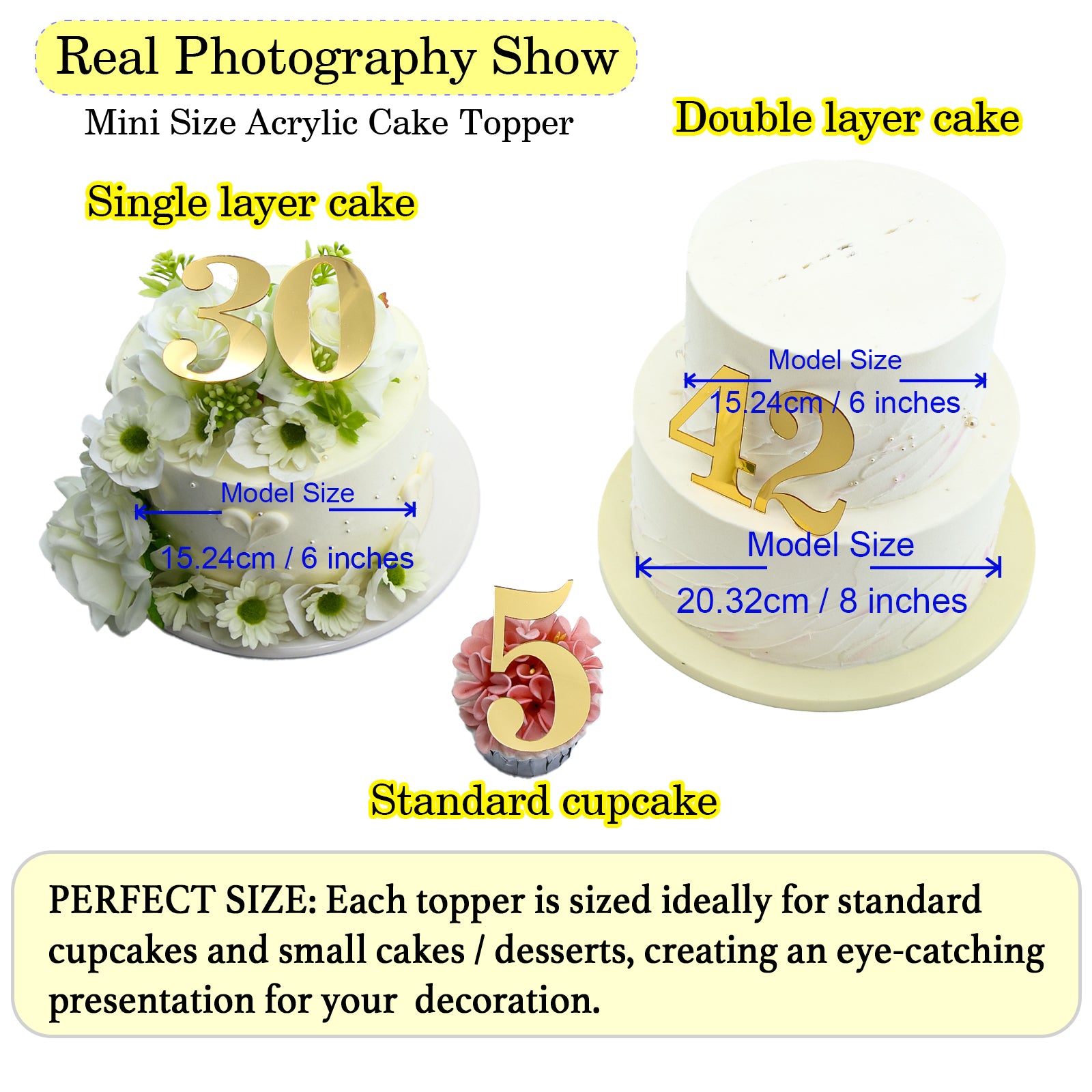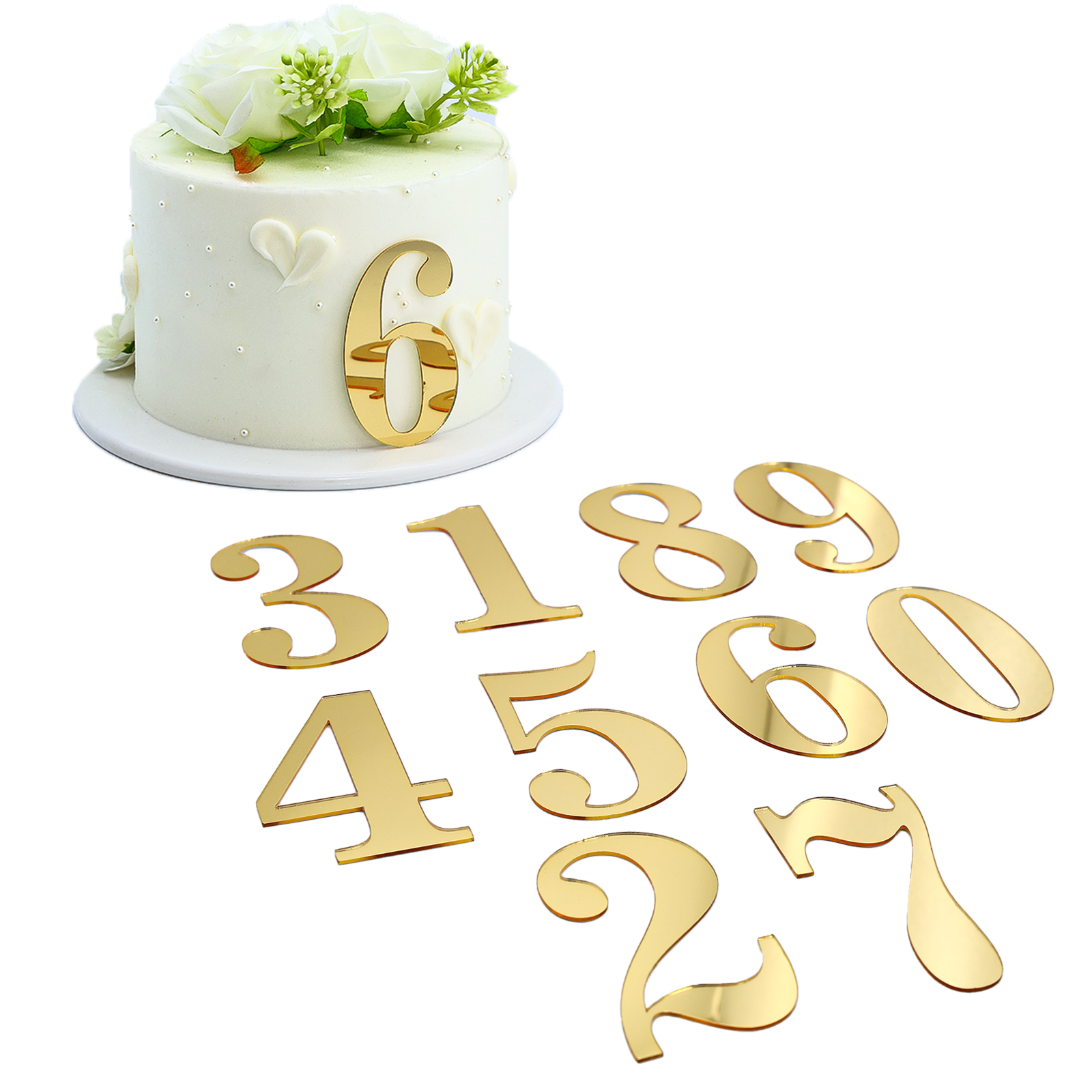 Celebrate in style with these golden mirror acrylic number cake toppers. Perfect for birthdays, anniversaries, and milestone events, these reusable toppers add a sparkling finishing touch to any cake or dessert.