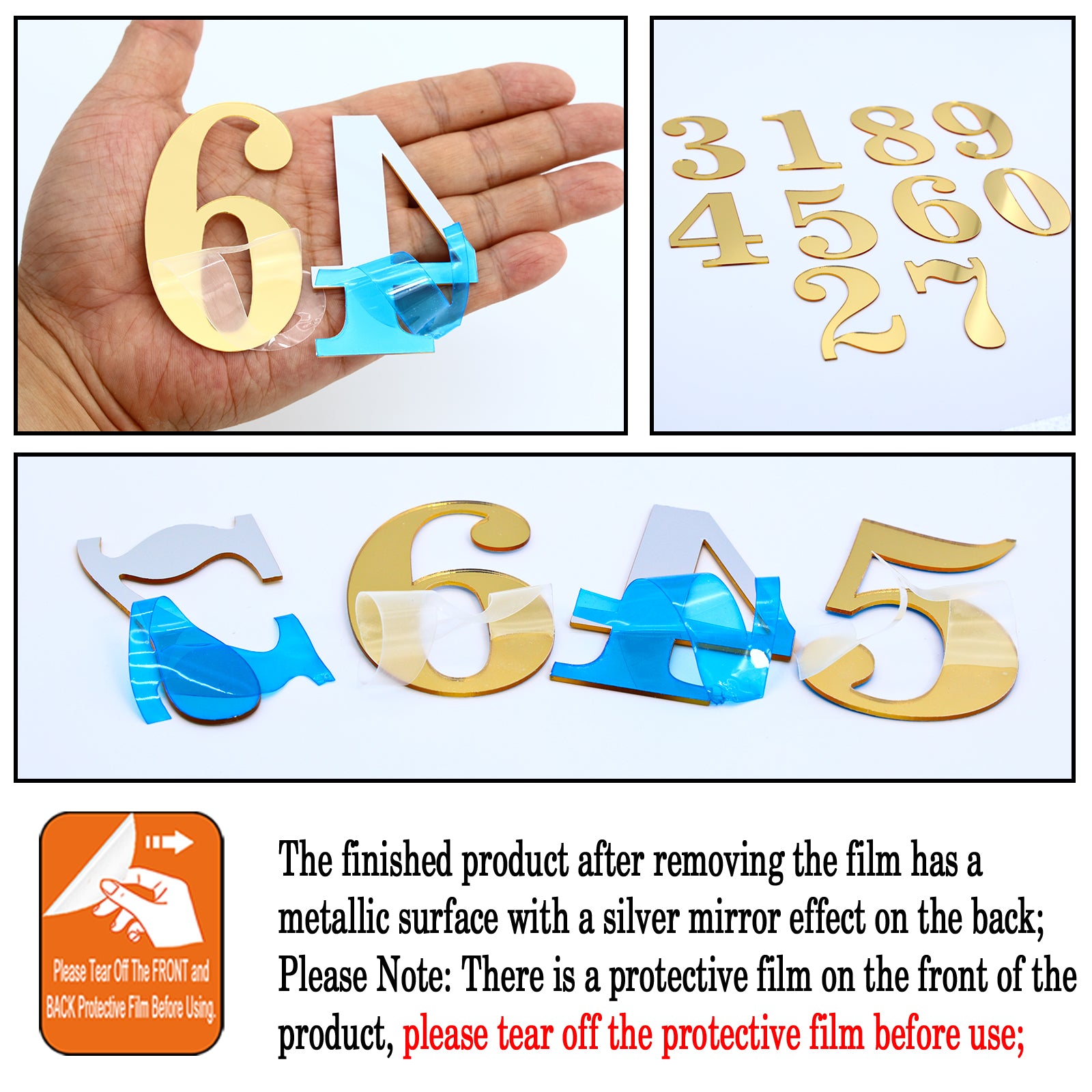 Crafted from premium 1.33mm thick acrylic, each number features a mirror gold front and a silver backing for a high-quality look. A protective film on both sides keeps them scratch-free until you’re ready to use them.