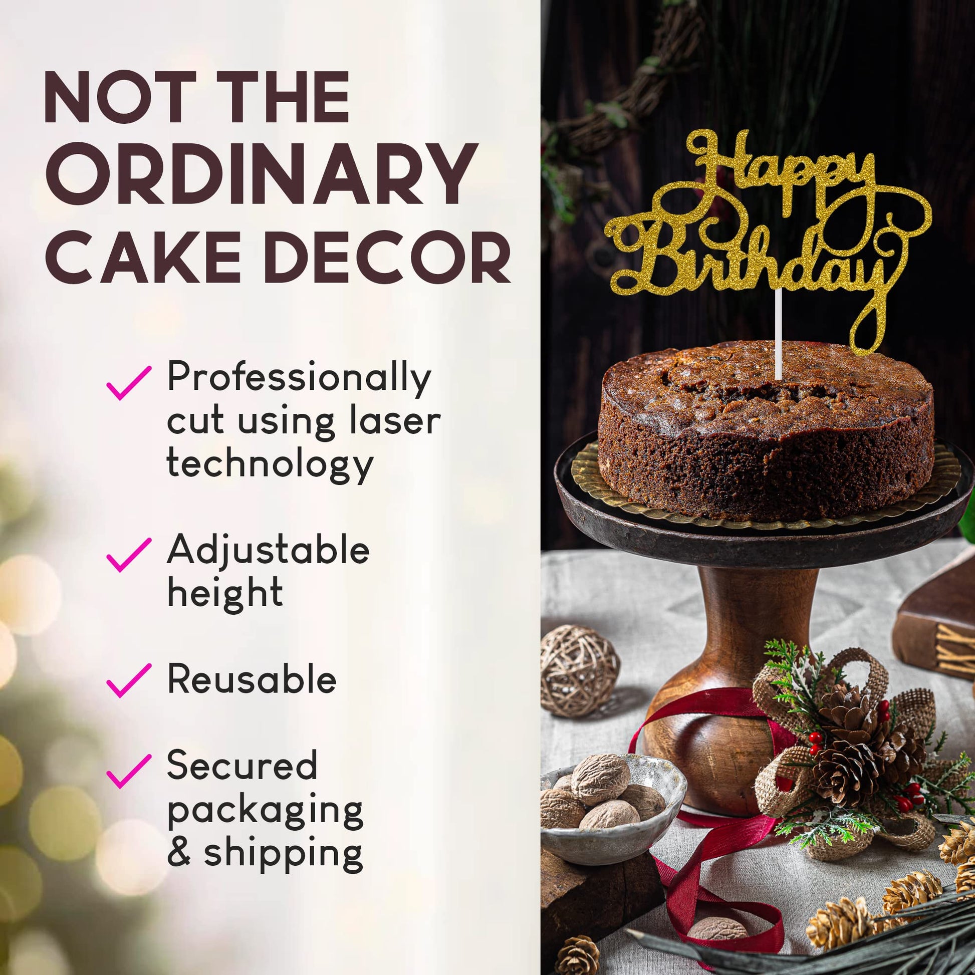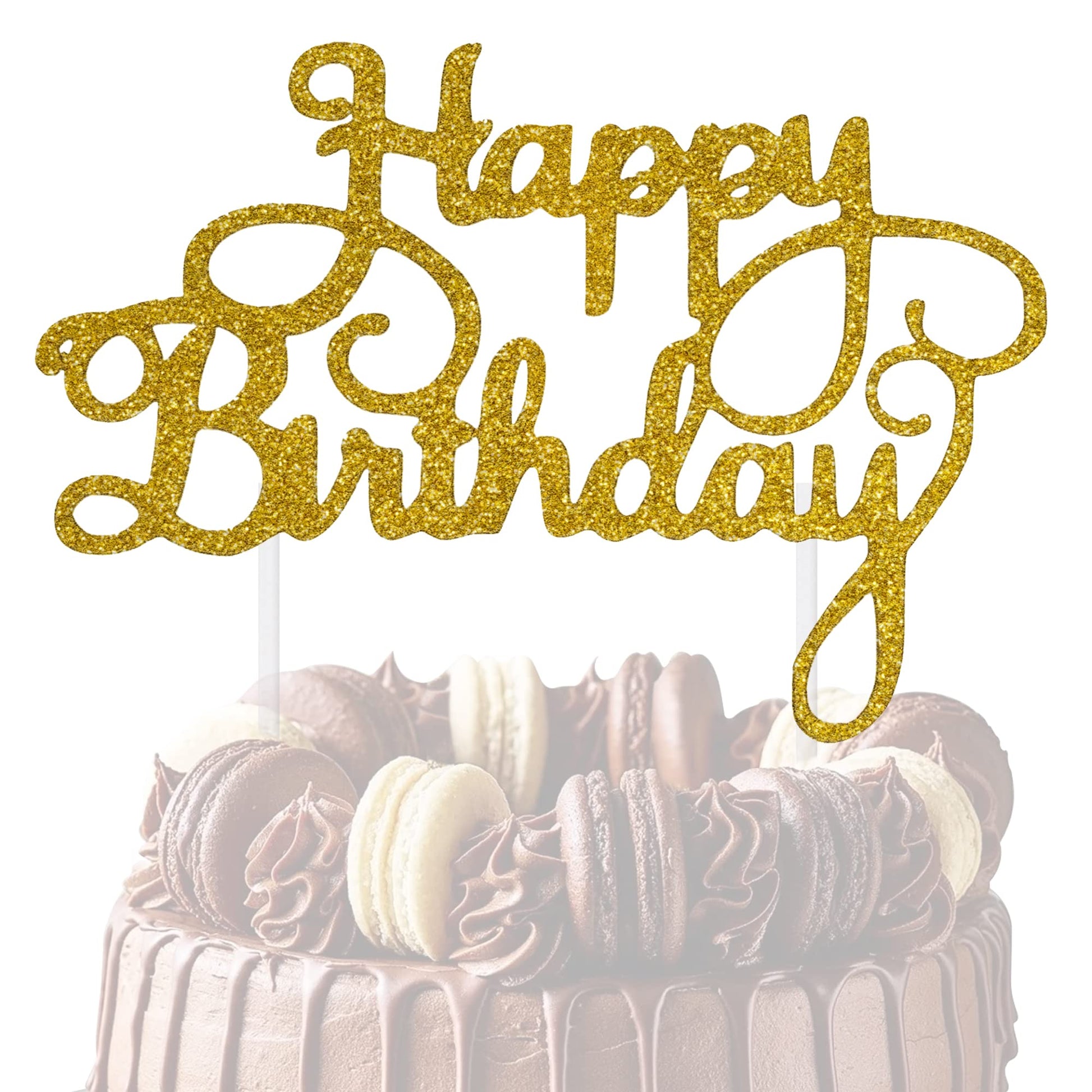 Happy Birthday Cake Topper Glitter Cardstock Toppers - Birthday Decor
